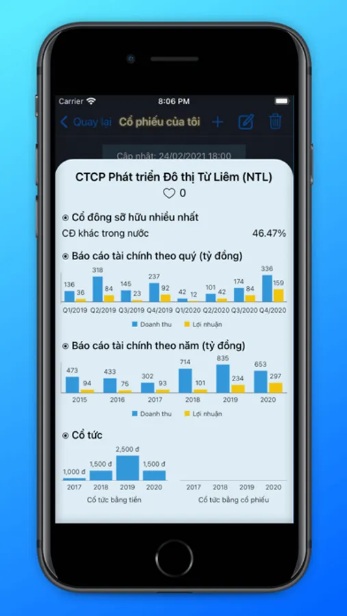 * Chức năng lập danh sách các cổ phiếu cần quan tâm, với báo cáo tài chính trực quan