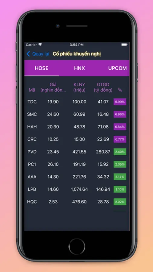 * Chức năng đưa ra cổ phiếu khuyến nghị nên mua vào (HOSE/HNX/UPCOM)