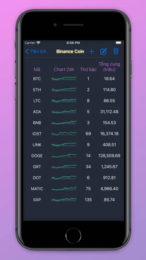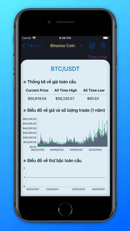 * Xem biểu đồ coin trên Binance, theo dõi sự tăng giảm thứ bậc trên thế giới