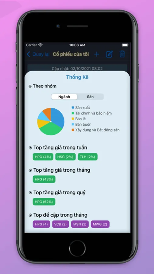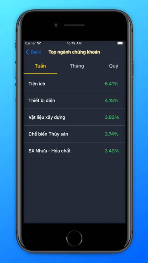 * Xem top ngành chứng khoán theo tuần/tháng/quý