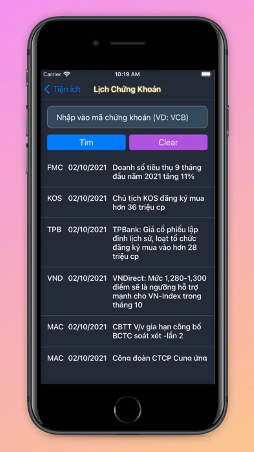 * Xem lịch sự kiện chứng khoán