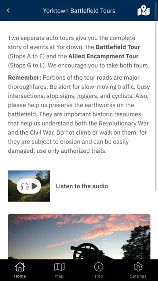The Yorktown Tour Guide was produced by The American Battlefield Trust in partnership with the National Park Service's Yorktown Battlefield, part of Colonial National Historical Park. This app is one of the Trust expanding lineup of apps that are ready to be downloaded today at https://www.battlefields.org/battleapps.