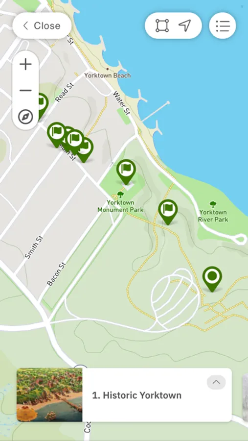 Let the Yorktown Tour Guide’s GPS-enabled audio tours lead you through 300 years of American history on a walking tour of Historic York Town or get up close to the events of the Siege of Yorktown on two separate driving tours.