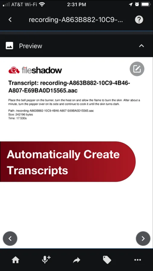 FileShadow is a streamlined, fully customizable organizational tool for your photos and files. Give greater context and information to your photos and files by recording and attaching voice memos. Easily add or redo multiple recordings and the resulting audio is saved and linked to your file. FileShadow will even make transcripts of your recordings for you, making the voice memo searchable. Written annotations are also available by clicking and typing in the description box.