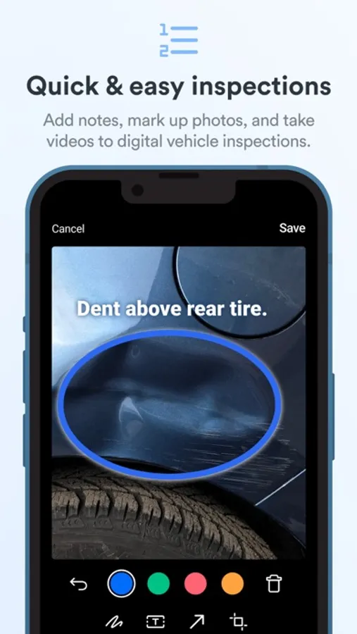 + Digital Vehicle Inspections - Quickly take and mark up photos, upload videos, and add notes to inspections—helping customers understand recommended services while documenting pre-existing vehicle damage.