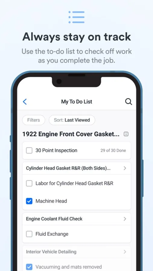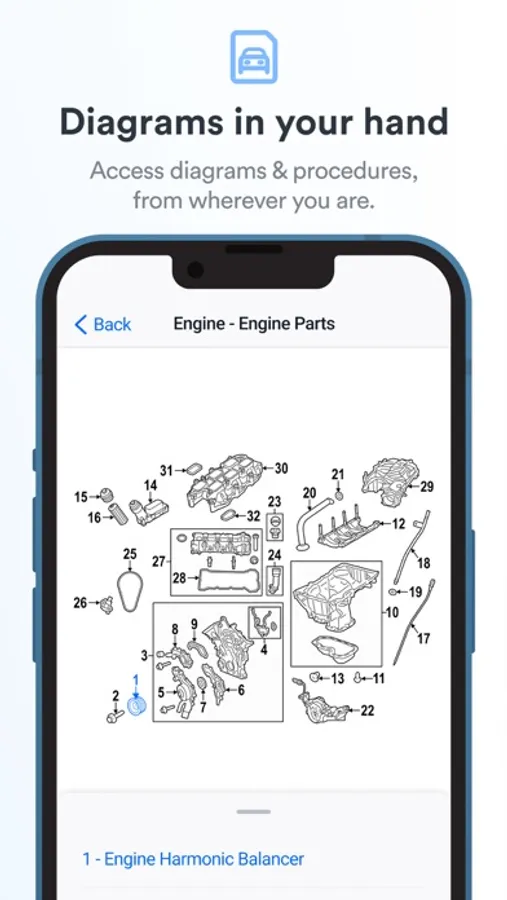 + Built-In Diagrams, Procedures & More - Open vehicle diagrams, specs, wiring, procedures, and fluid information directly from any work order within the app, for quick access to the info you need.