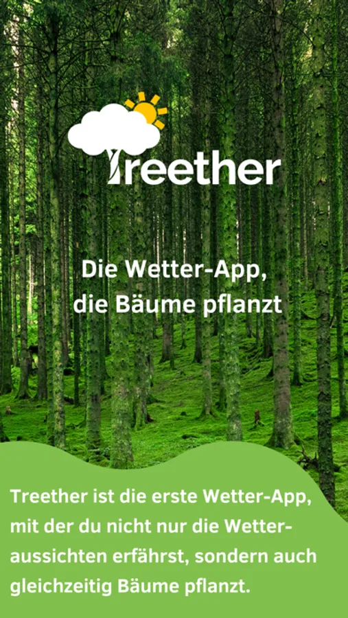 Treether ist die Wetter App, mit der du nicht nur die Wetteraussichten erfährst, sondern auch gleichzeitig Bäume pflanzt. Wie auch viele andere Wetter Apps generieren wir unsere Umsätze durch Werbeanzeigen, die Gewinne verwenden wir jedoch zur Unterstützung von Aufforstungsprogrammen.