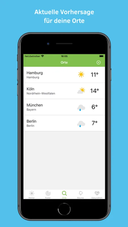 • Aktuelle Vorhersage für deine Orte