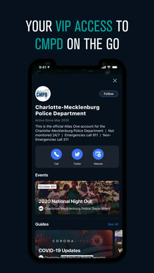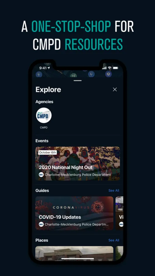 The Charlotte-Mecklenburg Police Department (CMPD) is proud to launch MyCMPD, an interactive public safety mobile app for Charlotte-Mecklenburg residents that provides updated, accurate, and vetted information at your fingertips. Get notified of police activity and emergencies in your area in near real-time, view crime in your neighborhood, access important CMPD information and resources, and most importantly, stay safe!