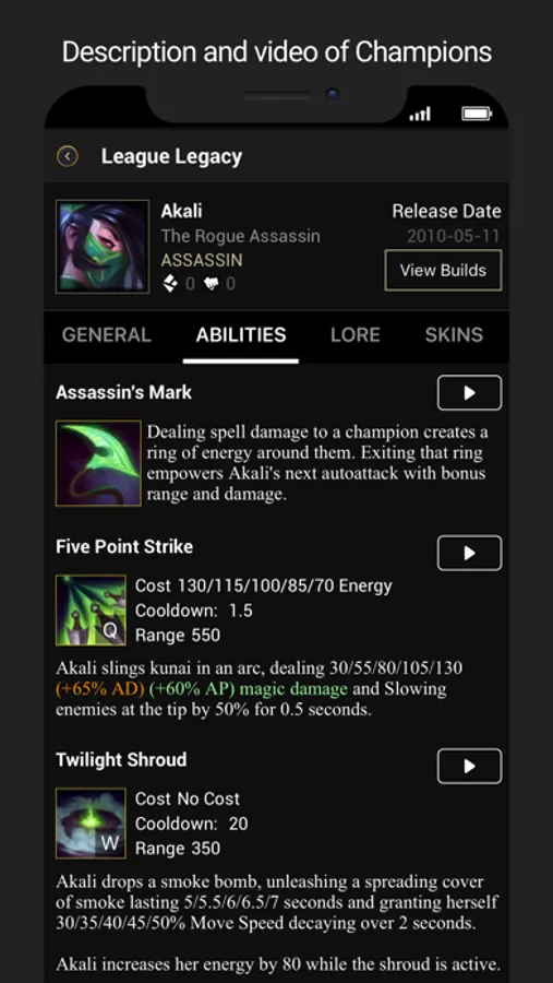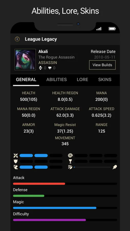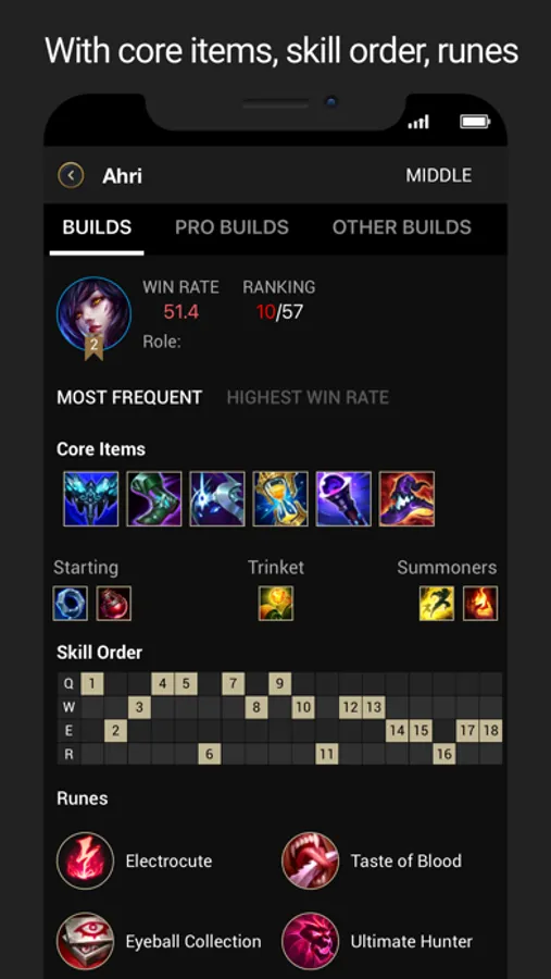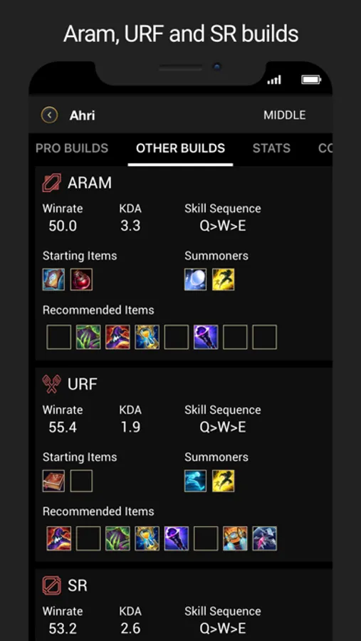Winning is an important aspect of playing any game. Let LoLegacy aid your course on the Summoner's Rift by providing a quick & easy path to your favorite champions builds which are only made possible by analyzing millions of ranked matches across all regions. Besides, pro builds help you learn how to play from your favorite professional gamers. legacy also features matchups insights, counters & tips which are everything you need to know to crush your enemy.