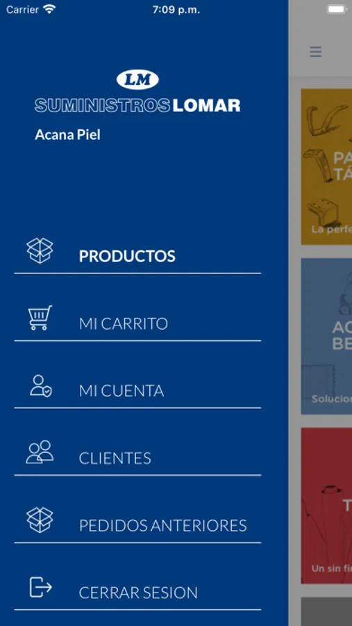 La aplicación de suministros Lomar para realizar los pedidos de una forma ágil, rápida y sencilla.