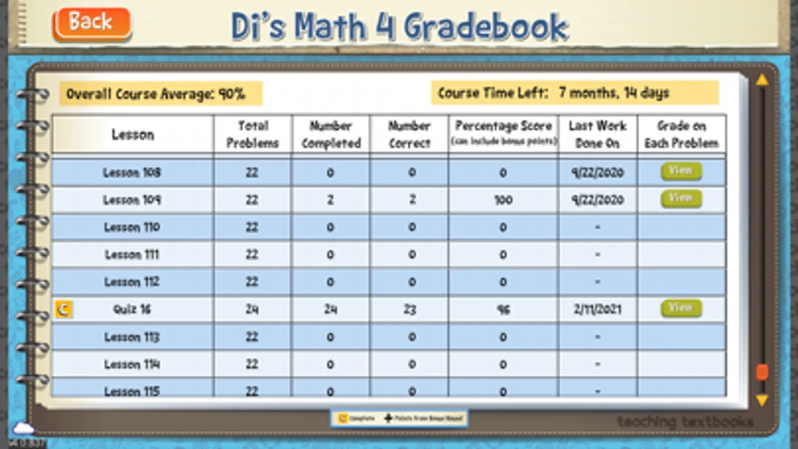 • the digitized version of the printed Teaching Textbooks Math 4 textbook (with a search feature and a hyper-linked index)