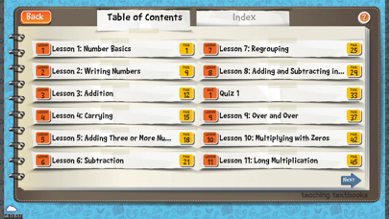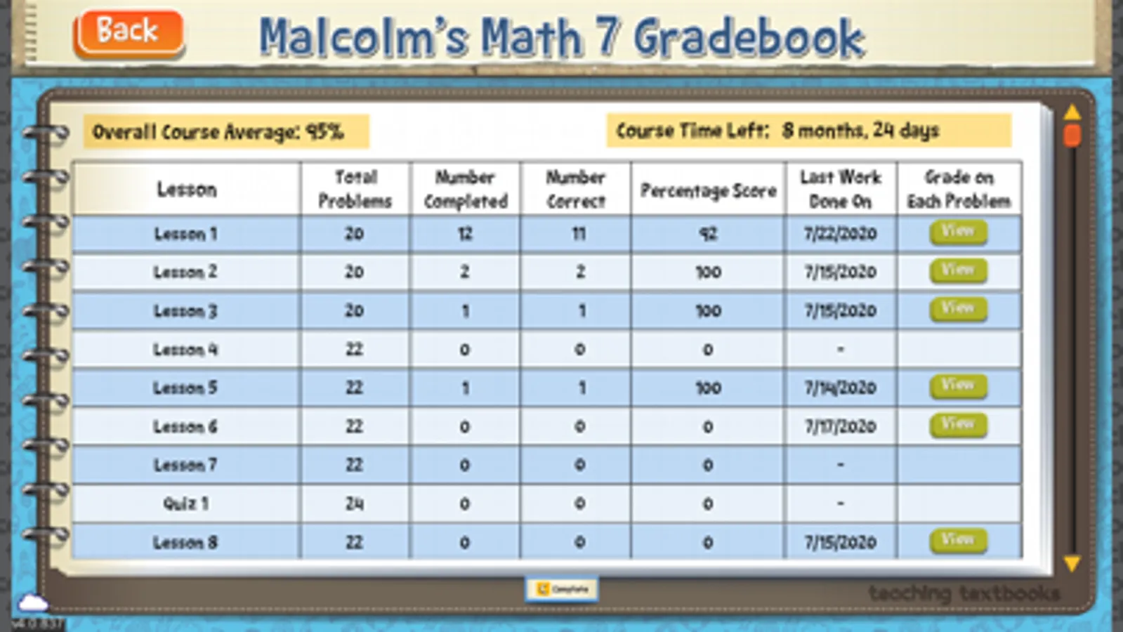 • the digitized version of the printed Teaching Textbooks Math 7 textbook (with a search feature and a hyper-linked index)