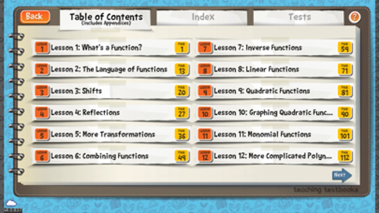 • the digitized version of the printed Teaching Textbooks Pre-Calculus textbook (with a search feature and a hyper-linked index)