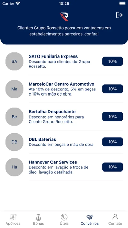Com o aplicativo Seguro Auto da Grupo Rossetto é possível consultar apólices, encontrar serviços e benefícios exclusivos.