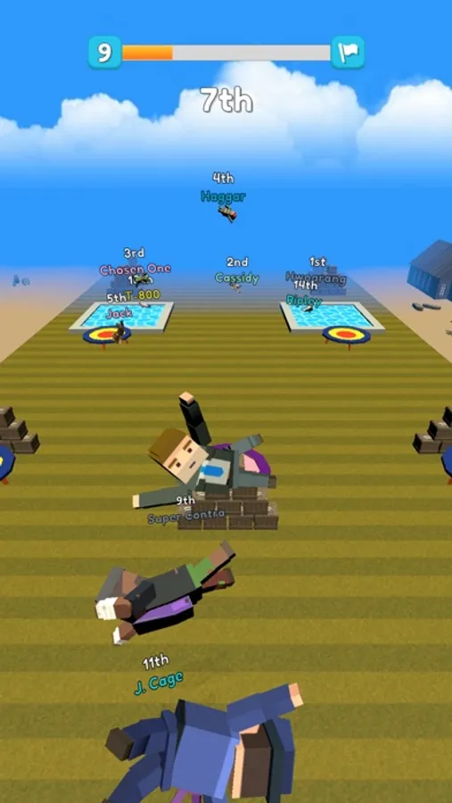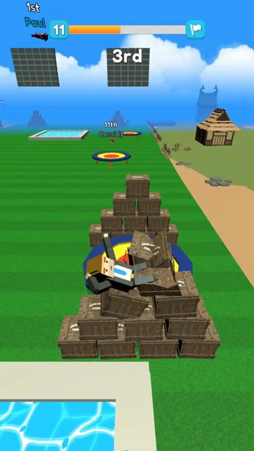 Reach to the end of the racing track, try to be the first. Jump, bump and do whatever you can to win the race!