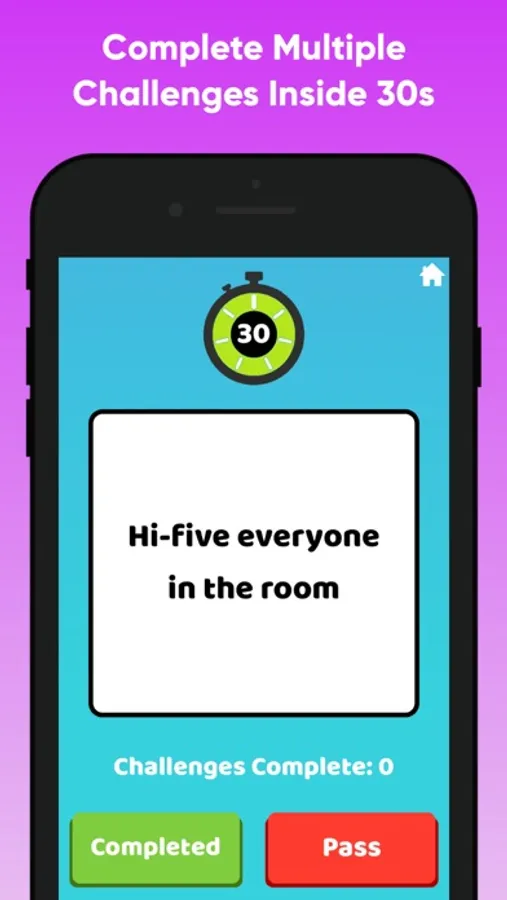 Compete against your friends to complete as many challenges as you can in just 30 seconds!
