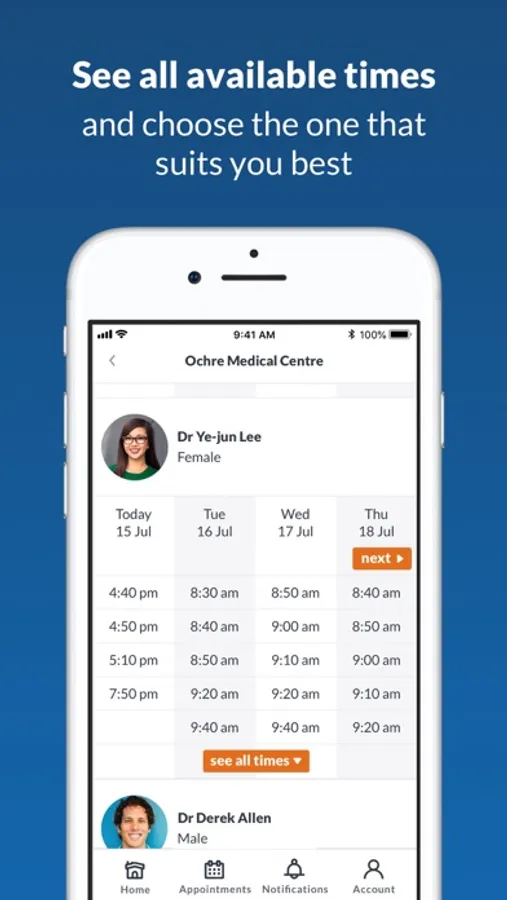 - Customised doctor and appointment type set-up to ensure you book with the right doctor based on your condition
