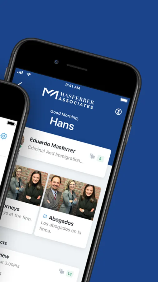 Masferrer & Associates is a dedicated, determined and cutting-edge firm. We believe that all people—regardless of their income level, ethnicity, race, or sexual orientation—deserve compassionate, zealous, and dedicated counsel. Our dedicated team approaches each case with empathy, passion, and an unwavering commitment to our clients. Seeing beyond courtrooms and records, we focus on the people we’re representing, and provide nothing short of elite representation. We aim to devote our full resources to understanding our clients’ individual needs to help them achieve their desired outcomes. We are proud to be a multi-cultural and bilingual firm. Connect with us on your case with the Masferrer app - a secure and encrypted digital platform for our legal services: