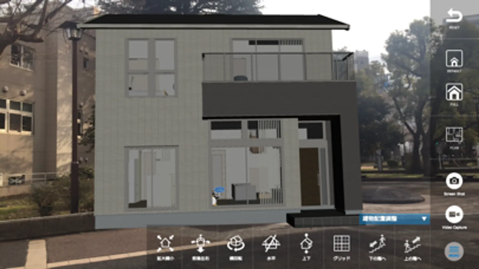 部屋の床や屋外の地面をアプリが自動認識し、表示したい場所をタップすると、そこにミサワホームの住まいが出現します。