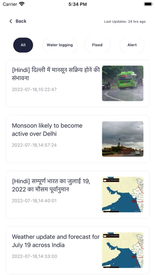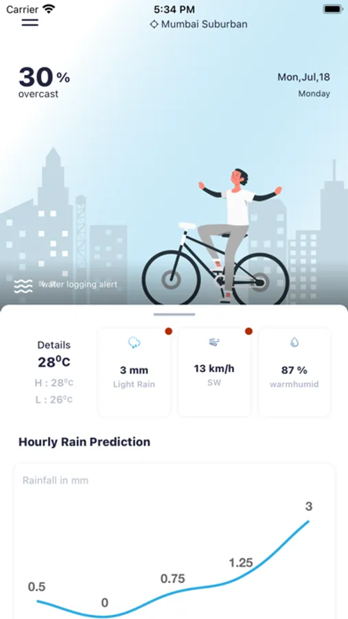 Along with the live and real-time weather / rainfall information, Mumbai Rain, also helps with the hourly weather / rainfall forecast up to 24 hours in advance. This would help Mumbaikars to plan their day well in advance and be weather ready.