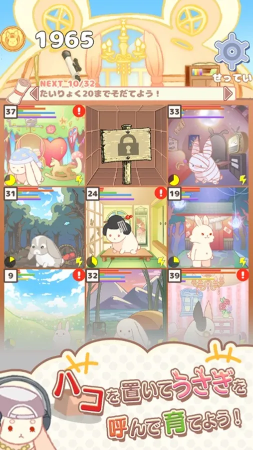 箱によってうさぎが成長・進化したり、たんけんやレース等のミニゲームで遊んだり、ただの放置のゲームとはひと味違った楽しみ方ができます!
