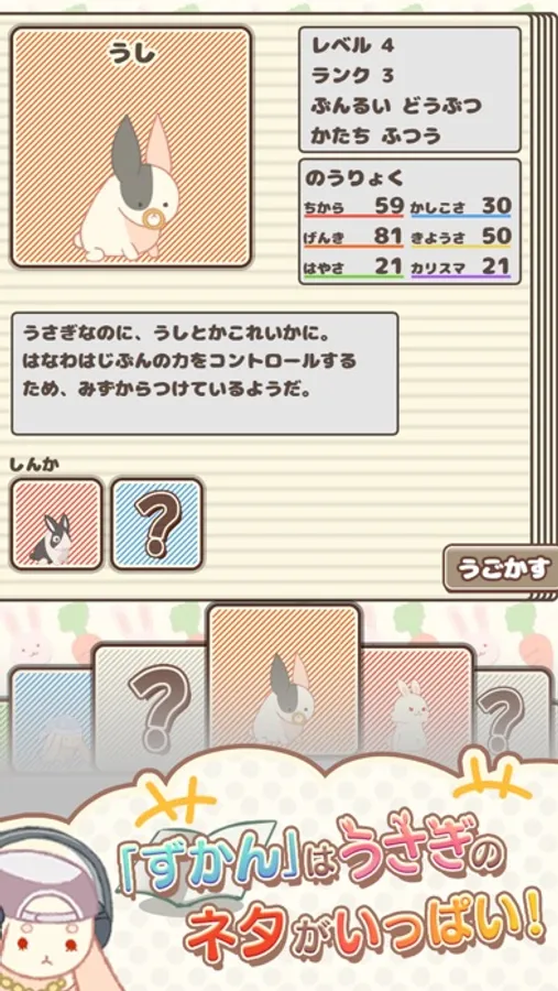 新しい種類のうさぎを手に入れたり、自分好みの能力のうさぎを育てよう!