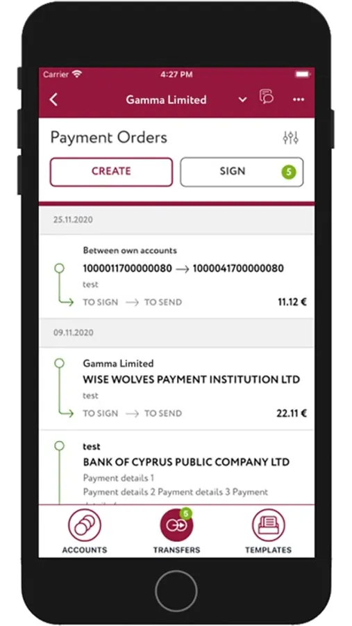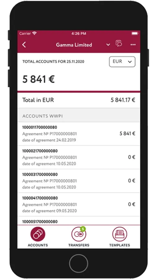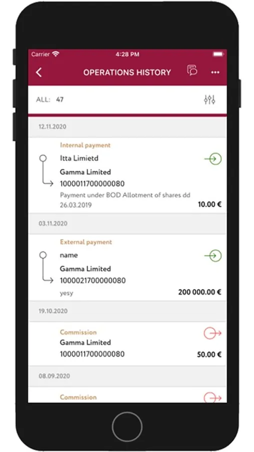 - Initiate local and international transfers in EUR, USD, RUR and other currency (upon request)