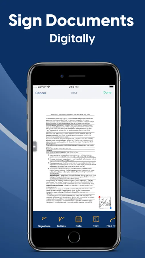 Signr lets you fill, sign, send and/or fax any form or document easily and fast. You can easily scan a picture of a paper form or document and fill it in on your phone . Then sign, edit, send or fax with no printing necessary - you can apply multiple forms of PDF annotations to the document as well such as add text, images, your signature and initials.