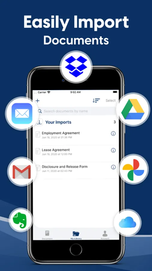 Key features: Import documents into the app from Google Drive, Dropbox, phone scan, images (JPEG and JPG) and Word, Excel or PDF documents. Easily import from other apps or email applications by importing using our Share icon.