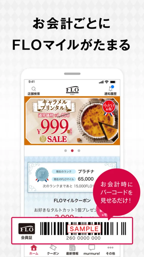 お会計の前に会員証をご提示いただくと「FLOマイル」を貯めることができます。