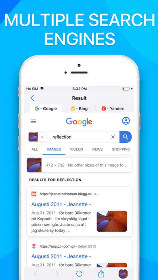 This app use Google,Bing and Yandex in the in-app browser. BUT this app is not sponsored by or affiliated with any of these search engines.