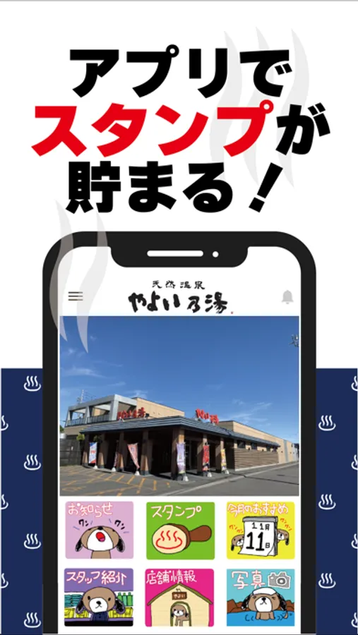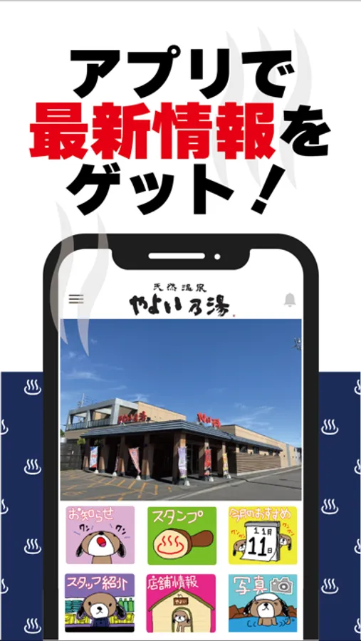 「やよい乃湯」公式アプリでは、各店舗の最新情報やアプリ限定のお得なクーポンを随時配信しています。
