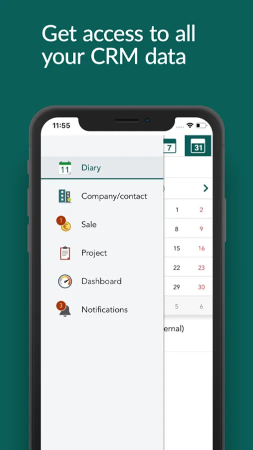 - Access all CRM data - including contacts, projects, sales and documents