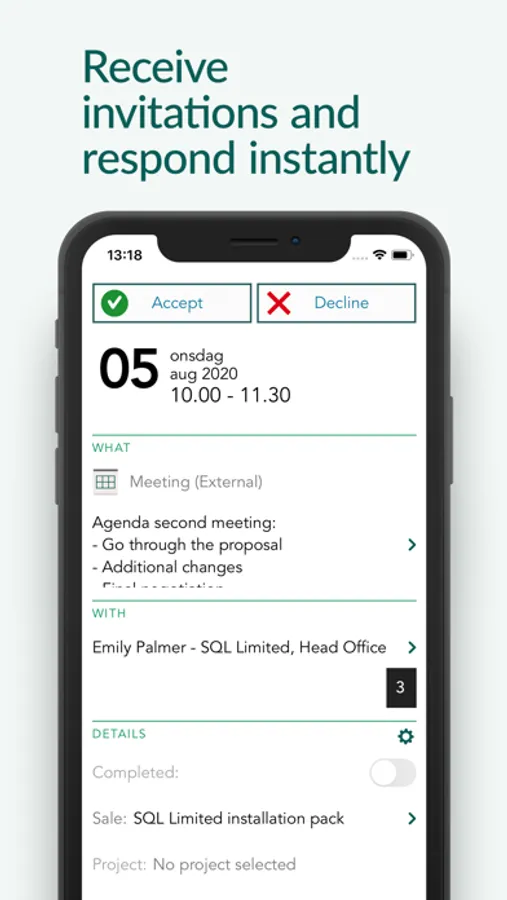 Schedule or reschedule meetings and activities, communicate to colleagues or save new information – all while on the go.