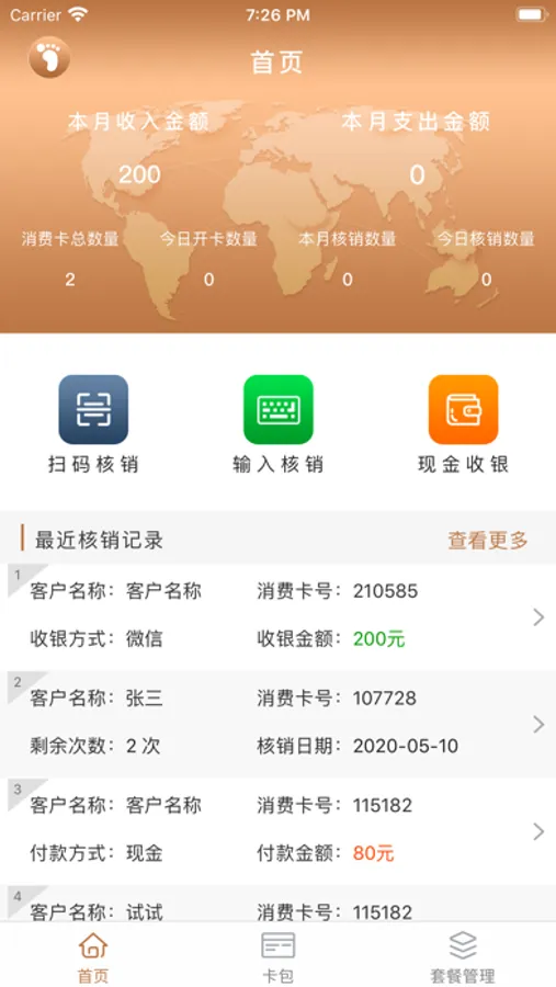 4、查看所有的开卡、以及核销的记录;