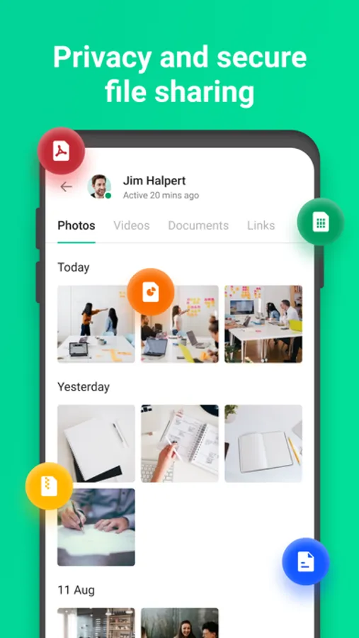 You can share text, images, and documents with people around your company.
