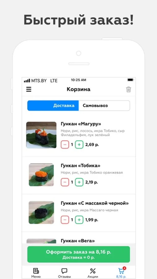 — Быстрый заказ с мгновенным подтверждением через приложение.