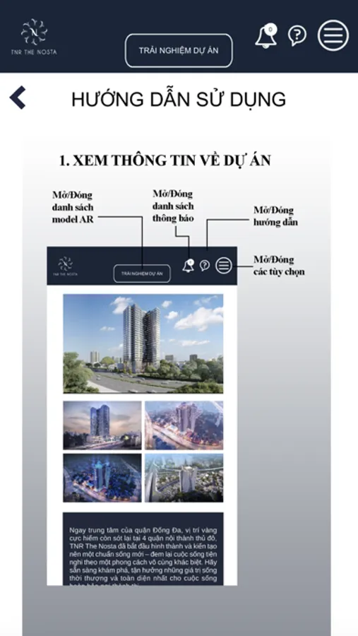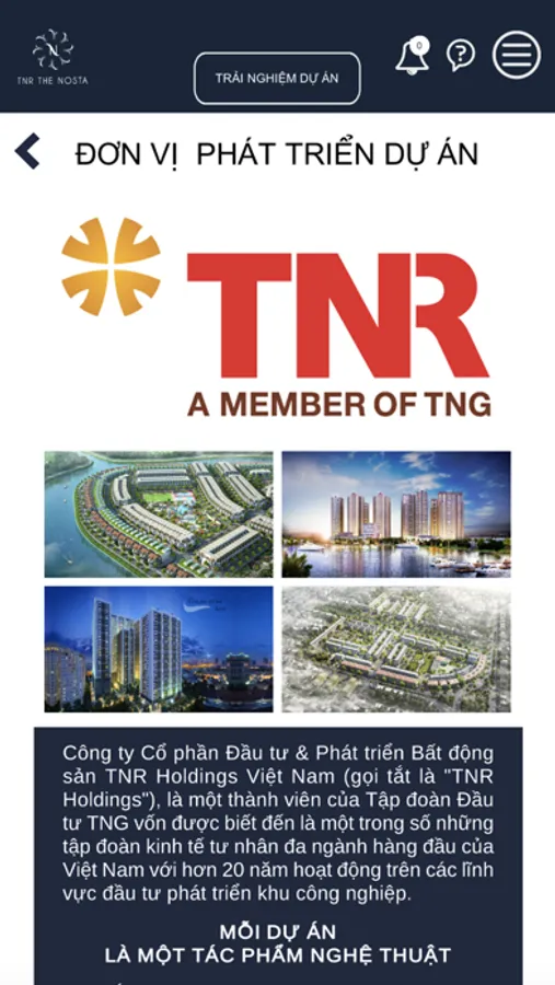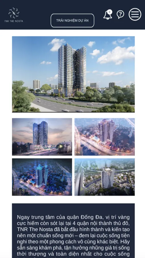 Ứng dụng cho phép bạn tìm hiểu thông tin dự án TNR The Nosta (90 đường Láng - Đống Đa - Hà Nội) một cách đầy đủ và hấp dẫn nhất.