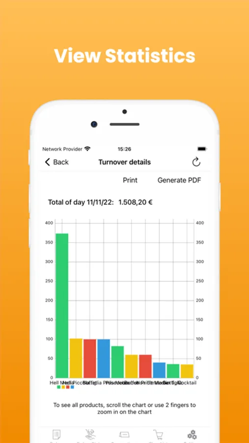 - View statistics of products, turnover and tax departments