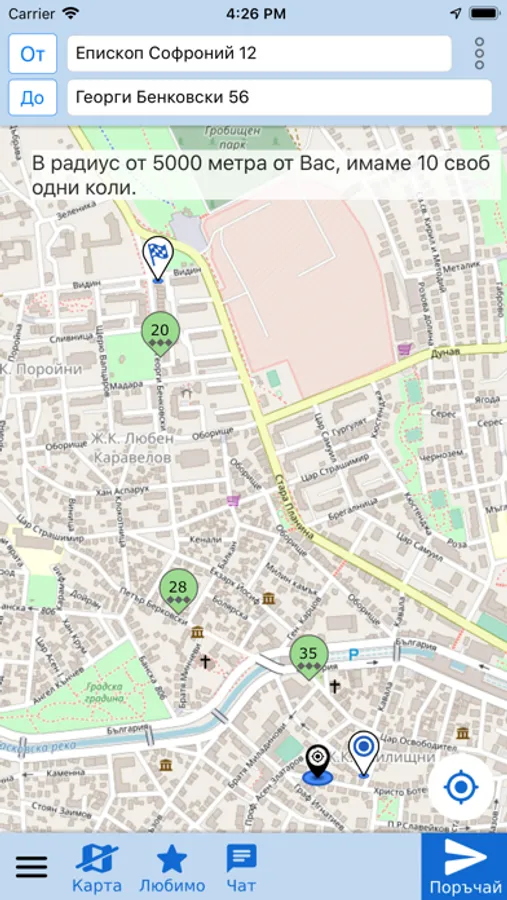 Приложението ще започне да ви търси кола, и когато таксито приеме вашата поръчка ,ще виждате в реално време как то пристига при вас!