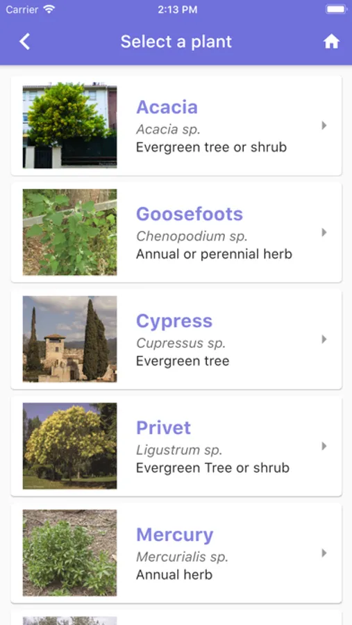 Planttes has selected 11 species for their allergenic potential and presents their main botanical characteristics and phenological phases in a files and a pictures gallery.