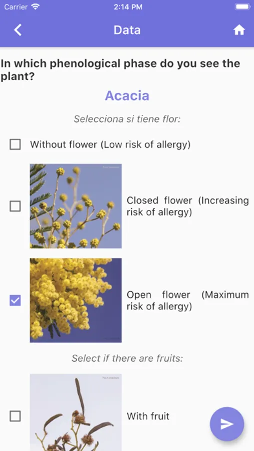 Planttes is a Citizen Science project that proposes to inform about the presence of allergenic plants in the environment and their phenological phase, which it translates into a level of allergy risk. With their records, citizens contribute to elaborate an updated map with street level accuracy of whether the chosen plant presents low risk of allergy (without flower and / or with fruit), increasing risk (closed flower), maximum risk (open flower). The visualization of this information in the map will help to avoid allergy episodes by no visiting the risk areas.