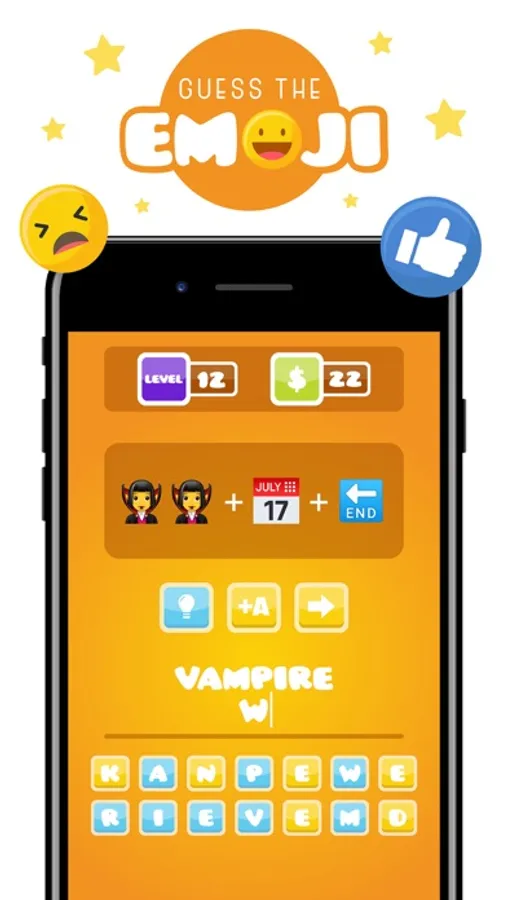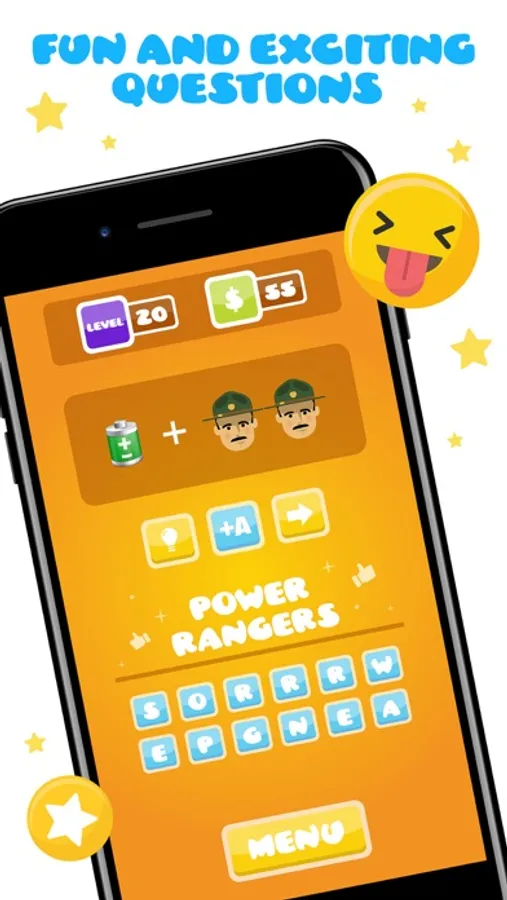 Game concept is to guess the combination of emojis that will appear in your screen. You have 1 minute to guess the movie quiz, in order to do that you need to tap in the correct letter until for form the complete name of the movie or food (food quiz).