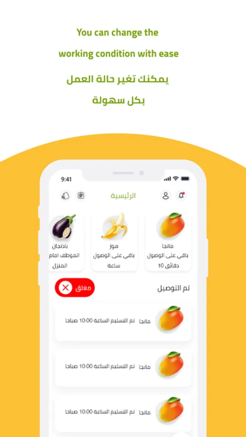 تطبيقك للتسوق و شراء نوعية جيدة من الفواكه والخضروات الطازجة ، إلى جانب ضمان النظافة و التوصيل السريع إلى عتبة بيتك.