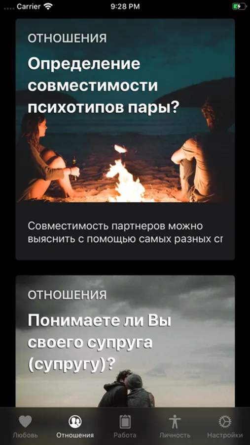 Ответы на эти и другие вопросы Вам подскажет наше приложение. В «Тестах совместимости» более 35 подробных тестов на тему отношений, работы и личных качеств.