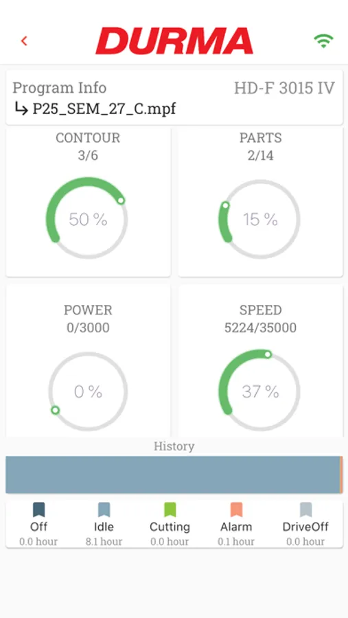 Durma Cloud uygulaması ile makinelerinizin çalışma durumlarını, çalıştığı anda oluşan alarmları takip edebilirsiniz.
