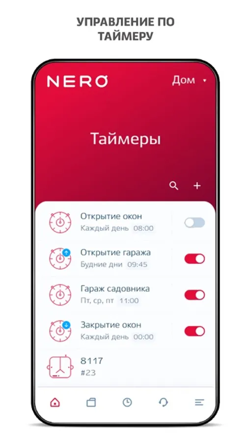 Настраивайте и управляйте вашими рольставнями, рольшторами, воротами, шлагбаумом, электроприводами, розетками и другими устройствами вместе с автоматикой Nero Electronics.