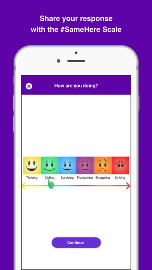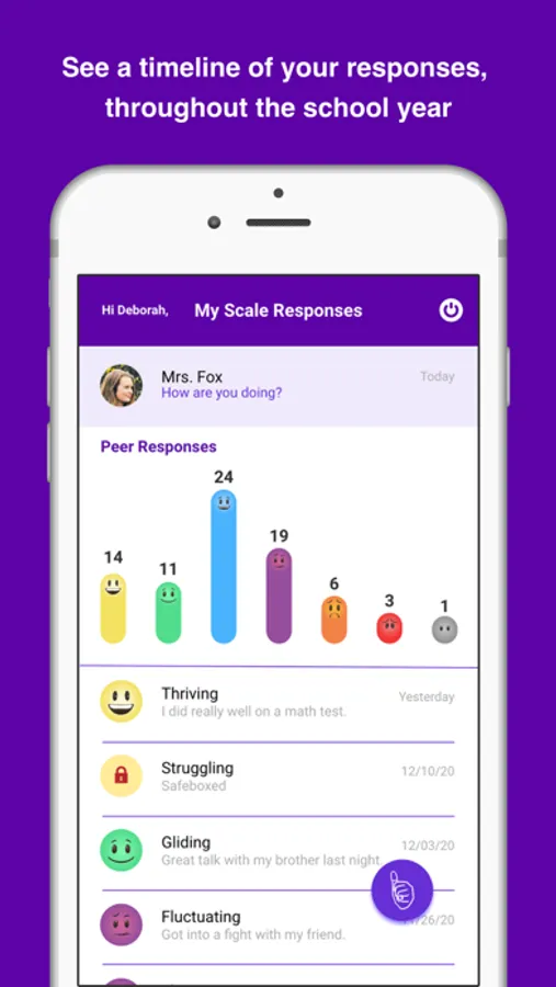 Connect with your teacher or school mental health professional using this #SameHere Scale App. You will be able to share your responses with your teacher and/or your school professionals, at their request - daily, weekly, monthly, and engage in private, secured chats related to those responses. No other students will be able to view your responses or communications.