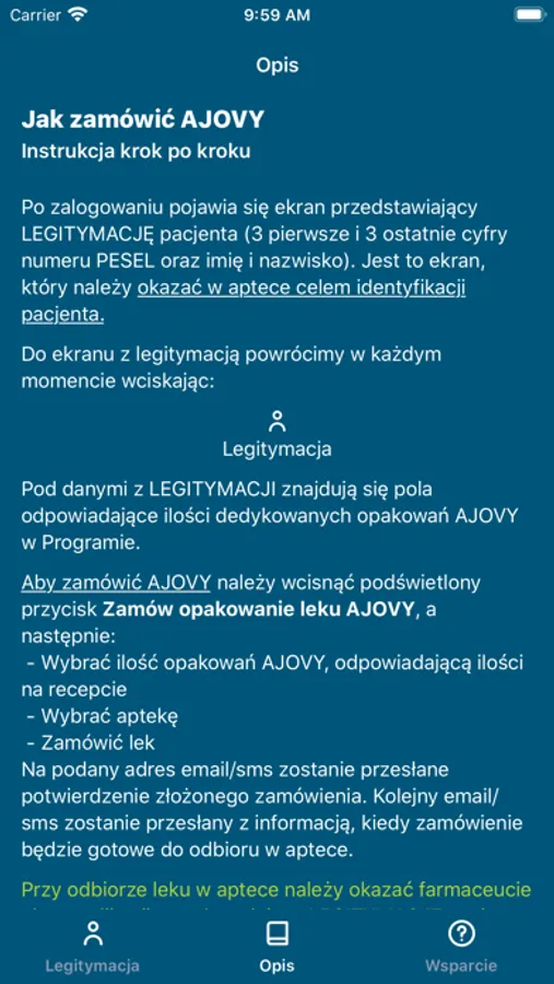 Migrena SOS next to aplikacja przeznaczona wyłącznie dla pacjentów, u których zdiagnozowano migrenę, którym lekarz przepisał receptę na lek profilaktyczny w tym wskazaniu, oraz którzy wyrażają chęć przystąpienia do programu Migrena SOS next. Aplikacja jest nowoczesnym rozwiązaniem pozwalającym zarówno na złożenie zapotrzebowania na lek bezpośrednio do wybranej przez pacjenta apteki, ale również zapewnia dostęp do bazy wiedzy o migrenie oraz o samym leku. Dzięki nowoczesnej, kompleksowej funkcjonalności, aplikacja Migrena SOS next stanowi mobilne centrum zarządzania dostępnością leku oraz pomaga w edukacji pacjentów.